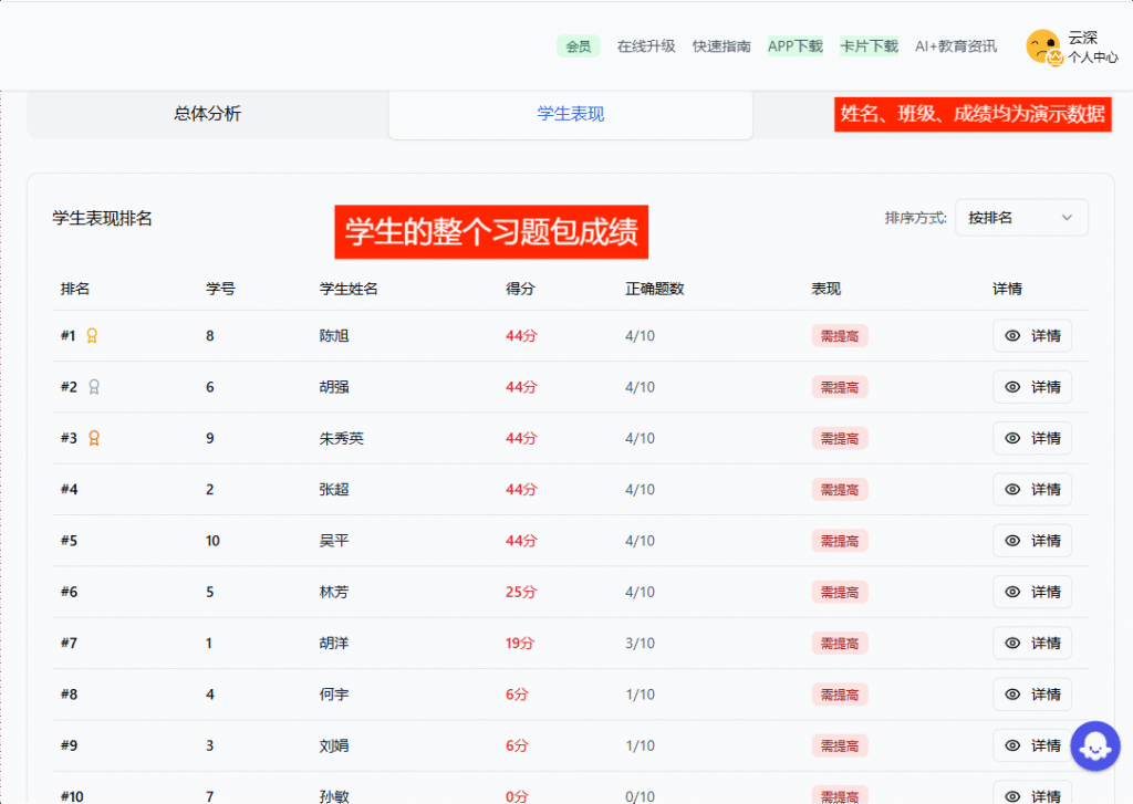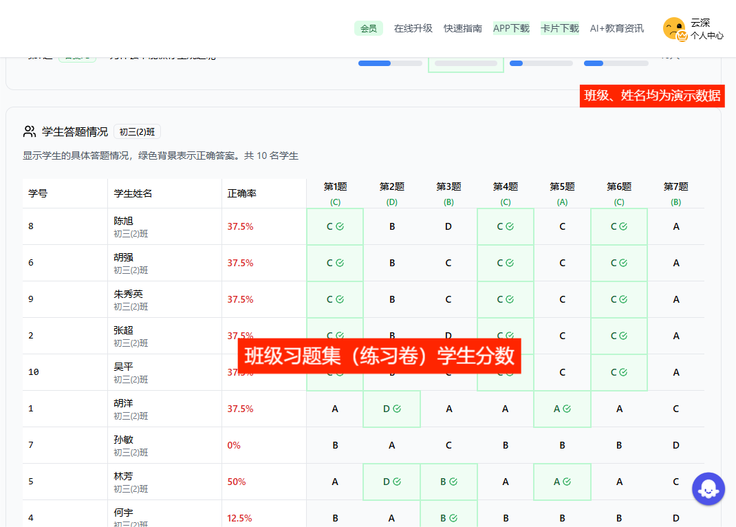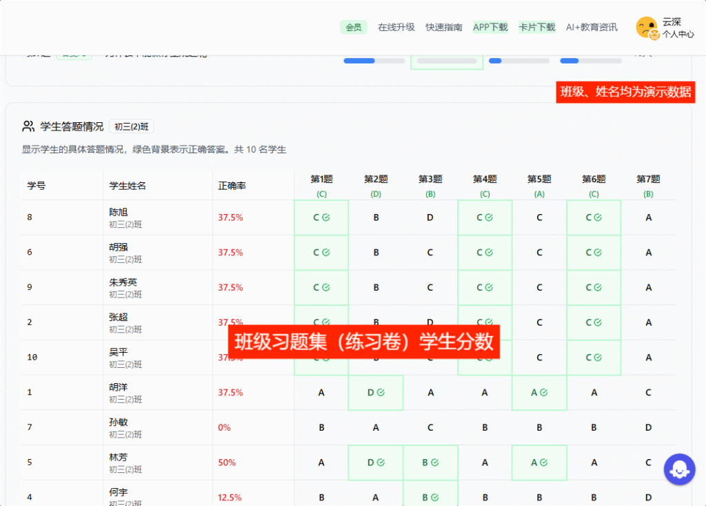 4、👩🎓 图 5 能看到某个班级里,每位学生的具体答题数据和分数哦